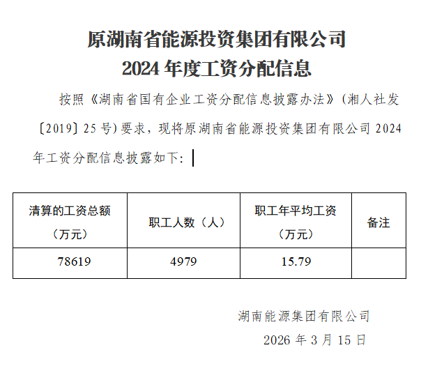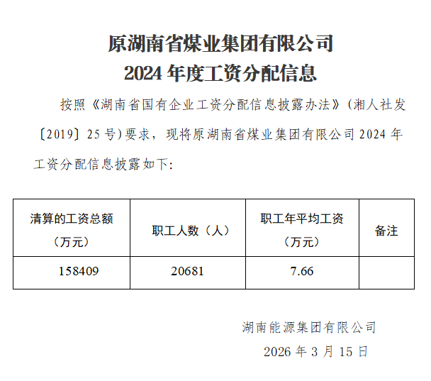 原湖南省能源投资集团有限公司2024年度工资分配信息 原湖南省煤业集团有限公司2024年度工资分配信息