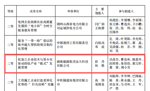 在bbin宝盈集团推动产融结合的指导下,金天科技以席大大新时代中国特色社会主义思想为指导,完整、准确、全面贯彻新发展理念,扎实推进企业高质量发展,该管理创新成果在获得第二十六届湖南省企业管理现代化创新成果一等奖的基础上,被择优推荐参加此次全国企业管理现代化创新成果评审。本次评选中,湖南省仅有7家企业获国家级企业管理现代化创新成果二等奖,金天科技是获奖企业之一。